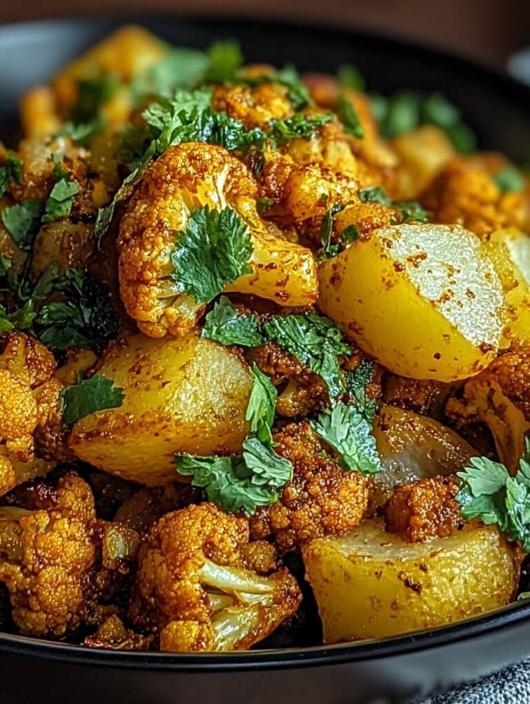 Aloo Gobi: Gewürzte indische Kartoffeln und Blumenkohl vereint zarte Röschen mit aromatischen Gewürzen. Ein Genuss für die Sinne, einfach zuzubereiten und voller nahrhafter Zutaten!