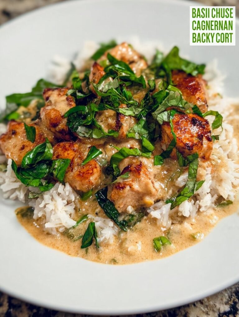 In meiner Verzweiflung griff ich nach dem, was am schnellsten ging: Hähnchen, Kokosmilch, eine vergessene Dose Currypaste aus der hintersten Ecke des Schranks und, glücklicherweise, ein riesiger Topf frischer Basilikum, den ich am Morgen gekauft hatte. Ich warf alles, was nicht bei drei auf dem Baum war, in den Wok und hoffte auf das Beste. Das Ergebnis war dieses aromatische, unwiderstehliche Basilikum-Hähnchen. Meine Gäste hielten es für ein stundenlang geschmortes Gourmetgericht. Ich sage immer, die besten Rezepte sind jene, die aus Zeitnot und einem Schuss Glück entstehen.