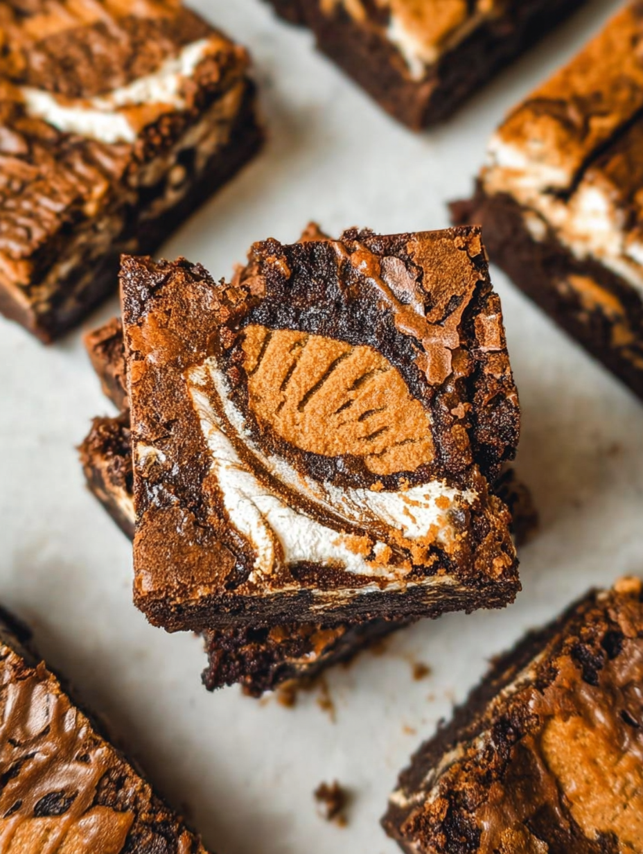 - Mit ihrer glänzenden Kruste und dem geschmolzenen Keksbutter-Wirbel sind diese Brownies ein visueller Höhepunkt auf jedem Dessertteller.