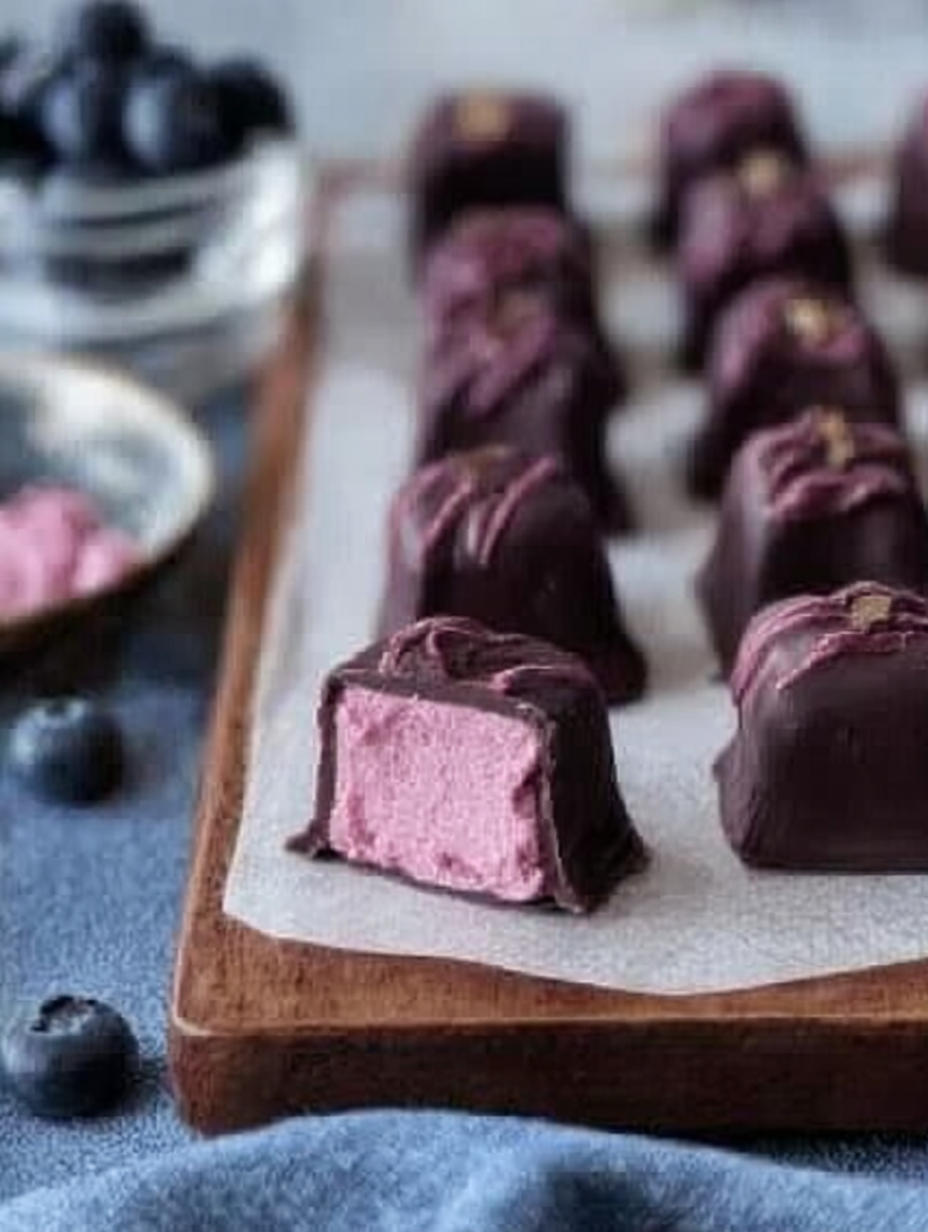Stellen Sie sich vor, Sie haben einen dieser Tage, an denen die Realität dringend eine Dosis Magie braucht. Genau dann kommen diese Blaubeer-Buttercreme-Pralinen ins Spiel – kleine, schokolierte Glücksbringer, die sofort jeden Stress wegschmelzen lassen.