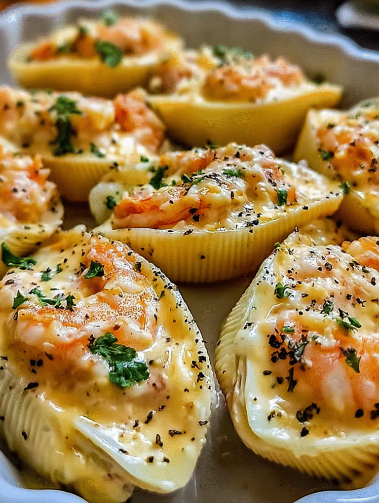 Die cremige, mit Meeresfrüchten gefüllte Muscheln sind der Inbegriff von Komfort-Essen, das sich elegant tarnt. Dieses Gericht beweist, dass man kein Fünf-Sterne-Koch sein muss, um einen unvergesslichen Abend zu zaubern. Der Kontrast zwischen der zarten Pasta, der reichhaltigen Füllung und der leicht salzigen Süße der Meeresfrüchte ist einfach unwiderstehlich. Es ist das perfekte Gericht, um Gäste zu beeindrucken, ohne dabei in Stress zu geraten. Sollten Sie jemals Zweifel haben, was Sie kochen sollen, wenn Sie ein bisschen Liebe und eine Menge Geschmack vermitteln möchten, dann ist dies die Antwort.