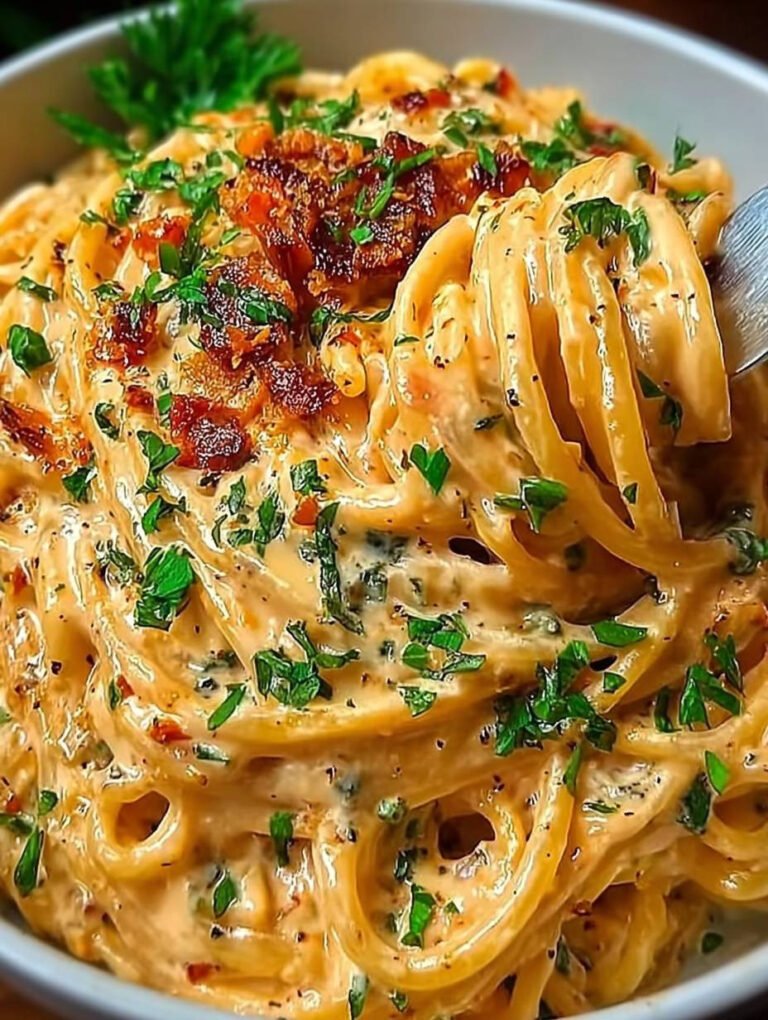 Diese cremige vegane Pasta ist nicht nur ein Fest für den Gaumen, sondern auch eine Augenweide auf jedem Teller. Die Kombination aus zarten Nudeln und süßlich karamellisierten Zwiebeln schafft ein harmonisches Geschmackserlebnis, das Selbstzweifel über die vegane Küche zerstreut.