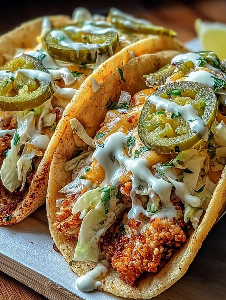 Dill Pickle Ranch Smash Chicken Tacos sind eine köstliche und kreative Variante klassischer Tacos. Mit ihrer einzigartigen Kombination aus Aromen und der knusprigen Käsespitze bieten sie ein unvergessliches Geschmackserlebnis. Diese Tacos sind nicht nur einfach zuzubereiten, sondern auch anpassbar an persönliche Vorlieben, was sie zur perfekten Wahl für jede Gelegenheit macht.