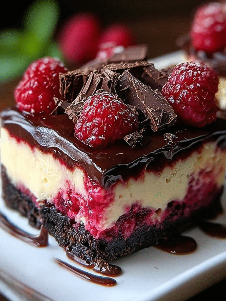 Ich hatte eigentlich nur versucht, meine zu trockenen Schoko-Kekse zu retten, indem ich eine Frischkäse-Masse darüber kippte und eine Handvoll gefrorener Himbeeren untermischte. Was unerwartet daraus entstand, war dieser Dunkler Schokoladen-Himbeer-Käsekuchen: Ein dekadenter Dessertgenuss – ein absoluter Zufall, der sofort zur Familientradition aufstieg.