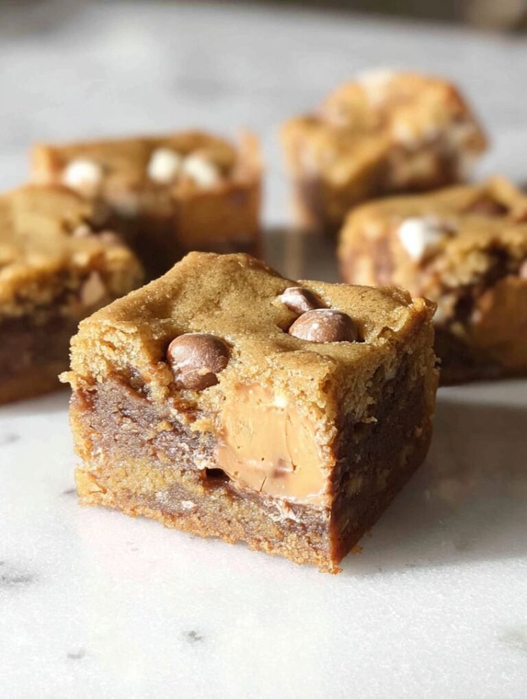 Vergessen Sie fade Kuchenstücke – diese Köstlichkeiten sind ein cremiges, nussiges Geschmackserlebnis, das jeden glücklich macht und das perfekte Rezept fürEinfache Kinder Bueno Blondiesist.