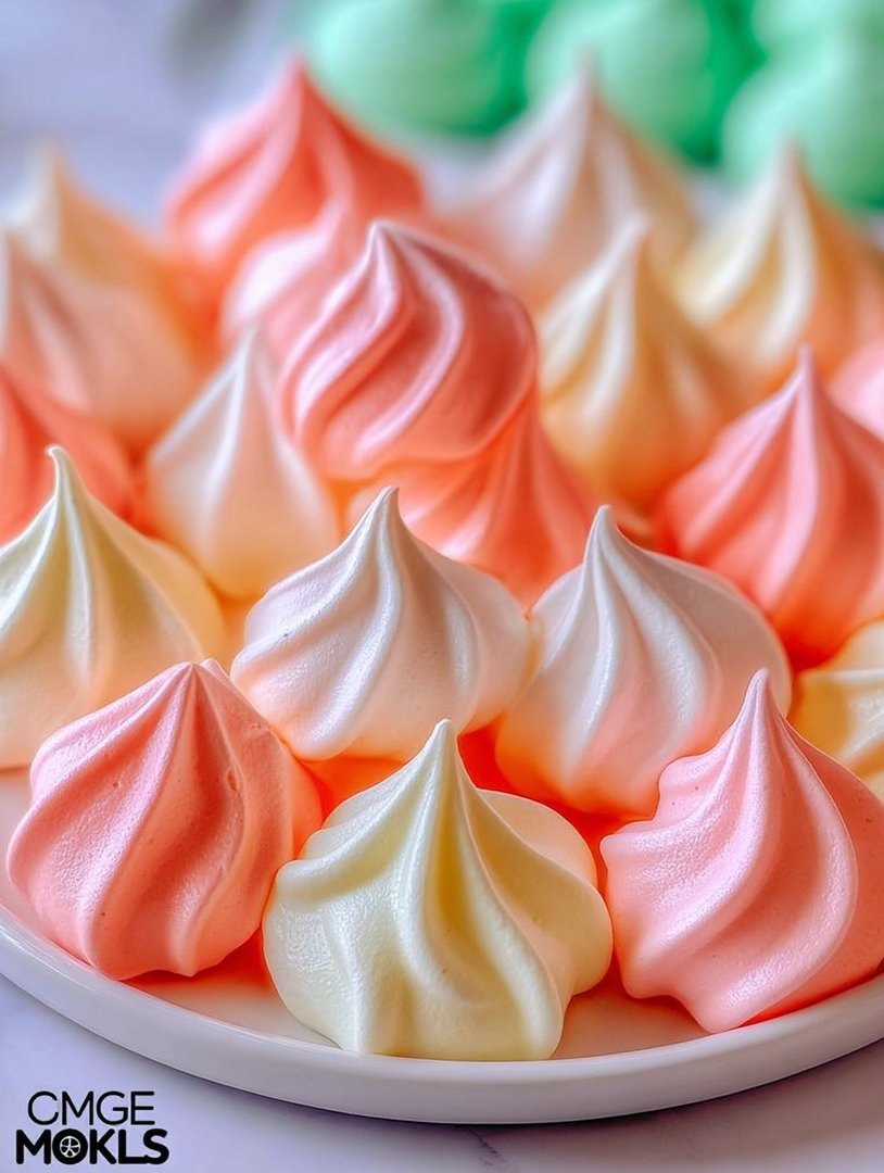 Lassen Sie die fertigen Baiser-Kekse vollständig auf dem Blech auskühlen, bevor Sie sie vorsichtig ablösen und servieren. Sie sind perfekt als leichtes Dessert oder als farbenfrohe Ergänzung zur Kaffeetafel.