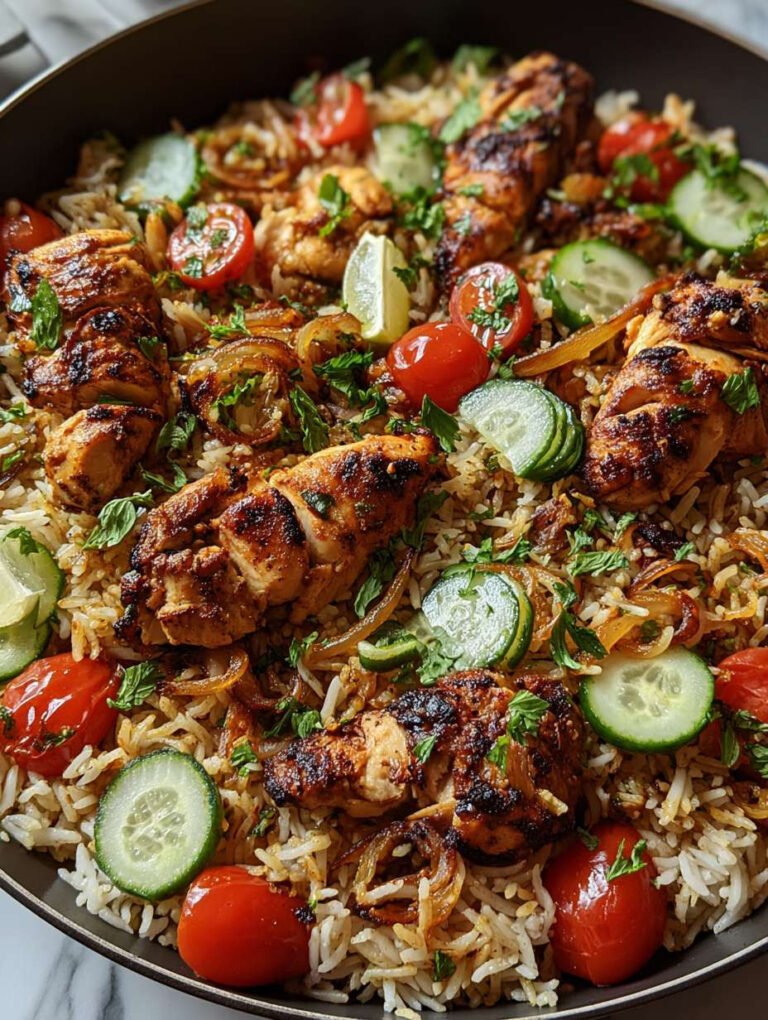 Ein Eintopf-Shawarma-Hähnchen-Rezept kombiniert zartes Hähnchenfleisch mit aromatischen Gewürzen, Reis und Gemüse in einem einzigen Topf. Es ist eine einfache und schmackhafte Möglichkeit, ein nahrhaftes Abendessen zuzubereiten, das in kurzer Zeit fertig ist. Ideal für stressige Wochentage!