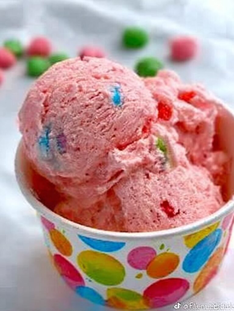 - Step 5: Fügen Sie die bunten Kaugummikugeln erst in den letzten 5 Minuten des Rührvorgangs hinzu oder heben Sie sie vorsichtig mit einem Spatel unter das weiche Eis, nachdem es aus der Maschine genommen wurde. Füllen Sie das Eis in einen gefriersicheren Behälter um und lassen Sie es im Gefrierschrank 2-3 Stunden aushärten.