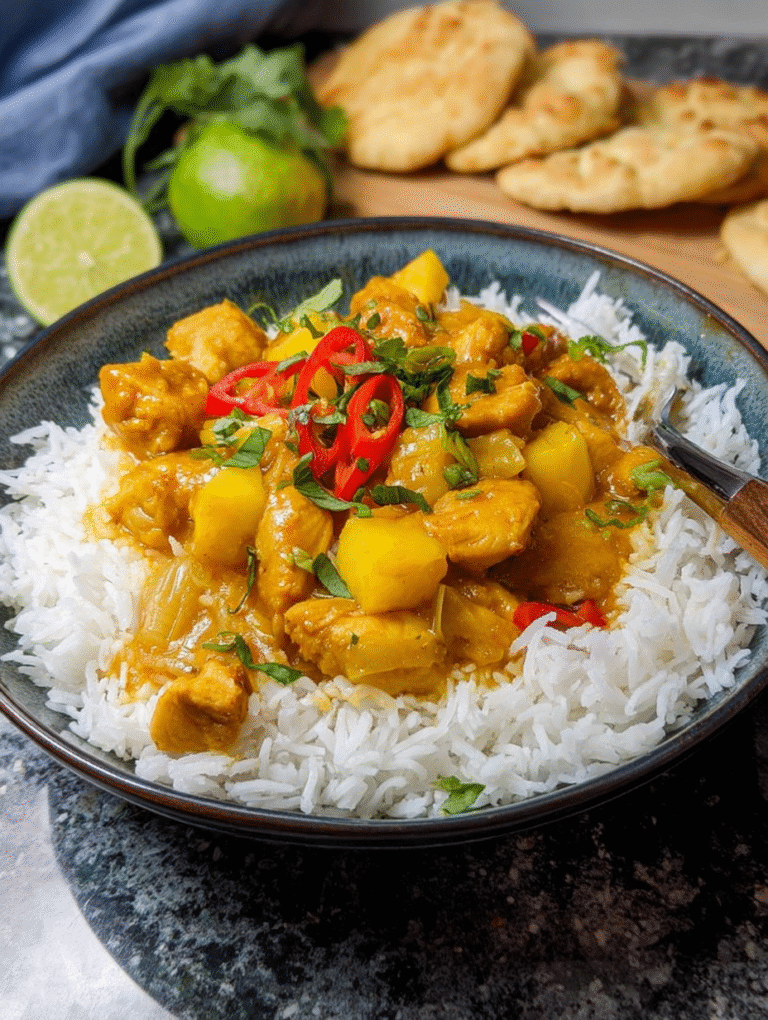 Das Einfaches Mango-Hühnchen-Curry beweist, dass außergewöhnlicher Geschmack nicht zwingend kompliziert sein muss. Es ist ein lebendiges, farbenfrohes Gericht, das selbst an tristen Tagen ein Lächeln auf die Gesichter zaubert. Durch die perfekte Abstimmung von süß, sauer, scharf und cremig entsteht ein Geschmackserlebnis, das jeden Bissen zu einem kleinen Urlaub macht.