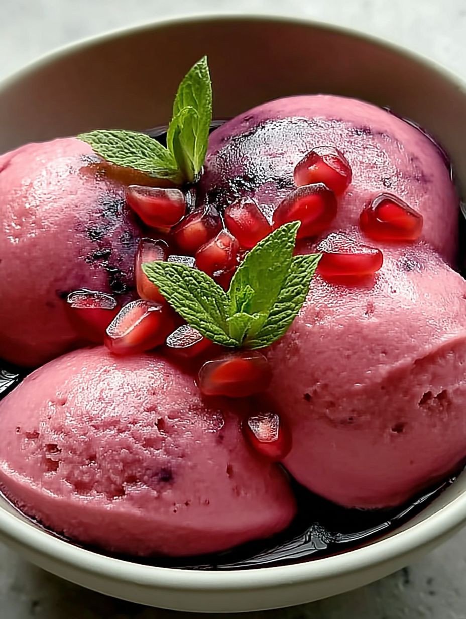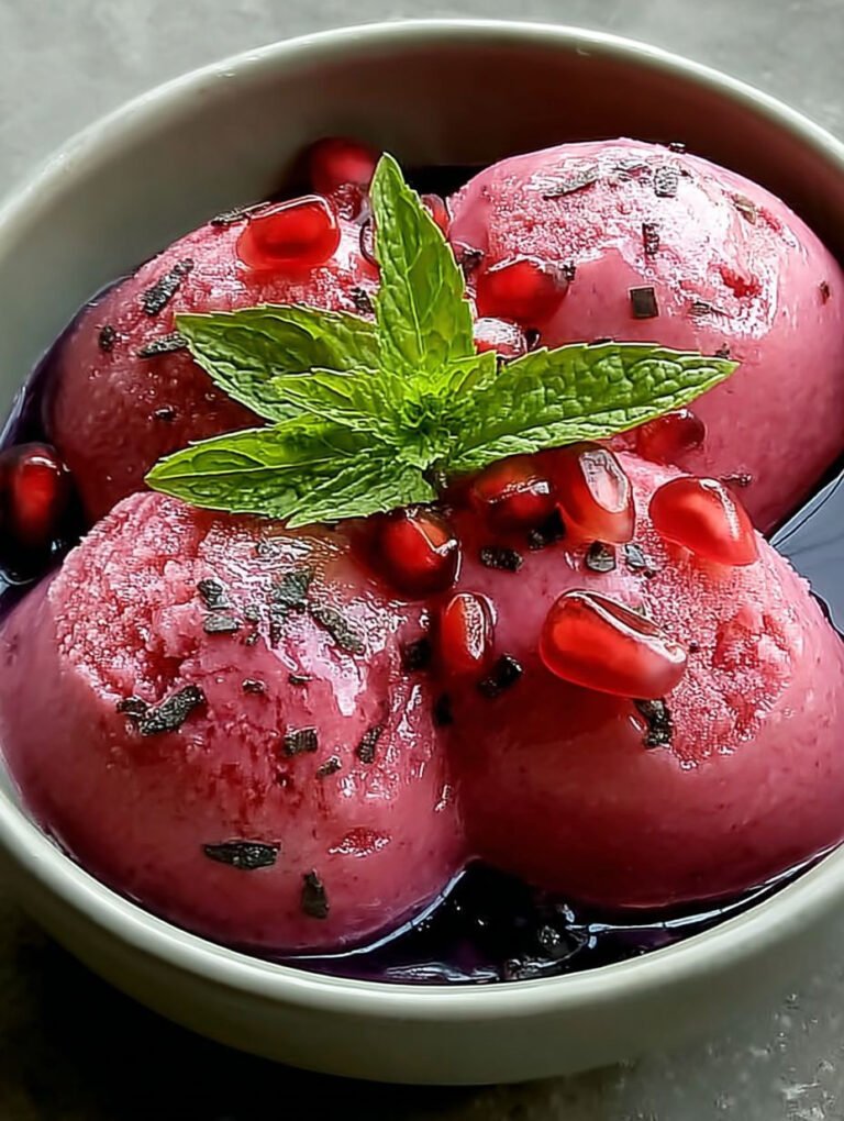 Erfrischender Genuss aus würzigem Granatapfelsorbet: Ein fruchtiger Traum für heiße Sommertage
