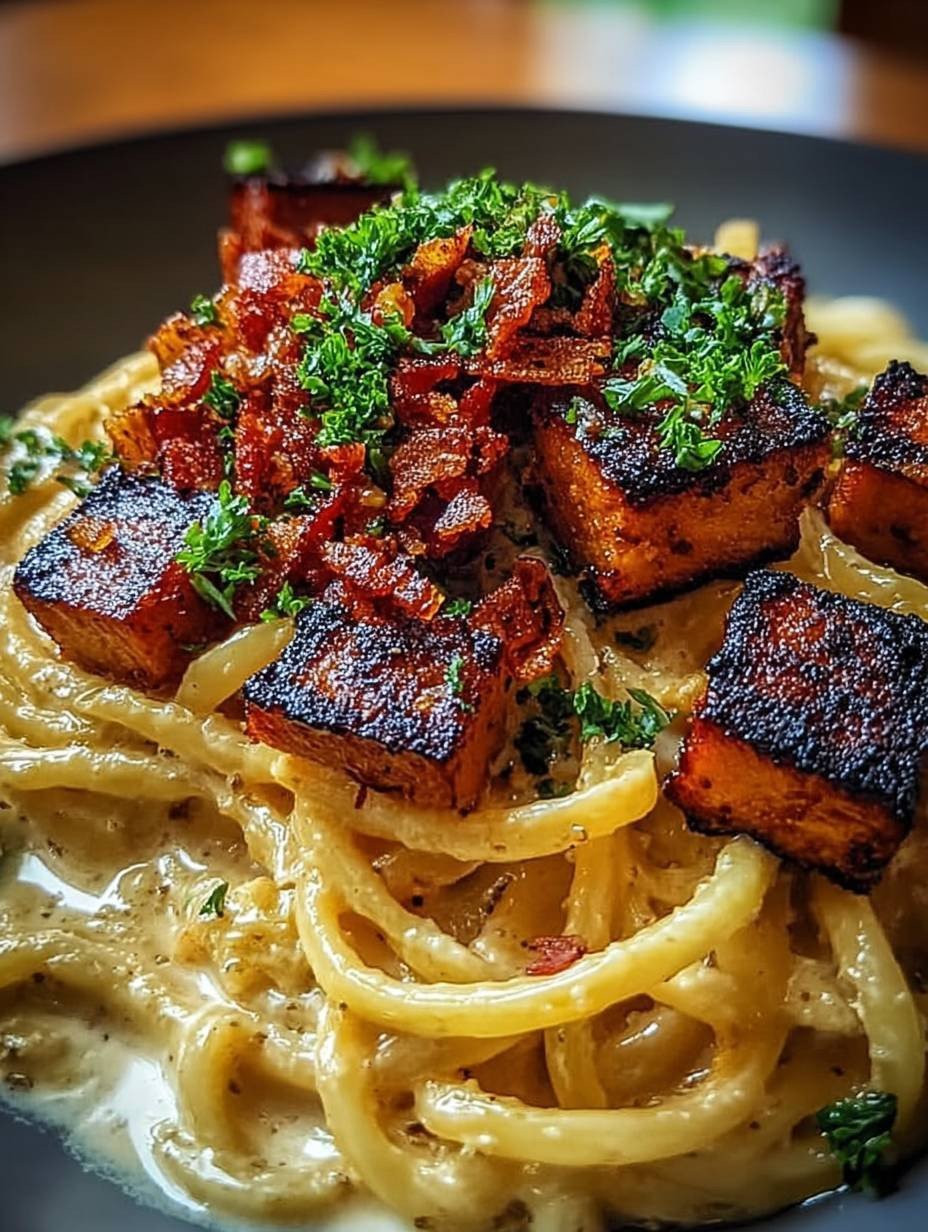 Geräucherte Tofu Carbonara: Ein pflanzlicher Genuss für Feinschmecker