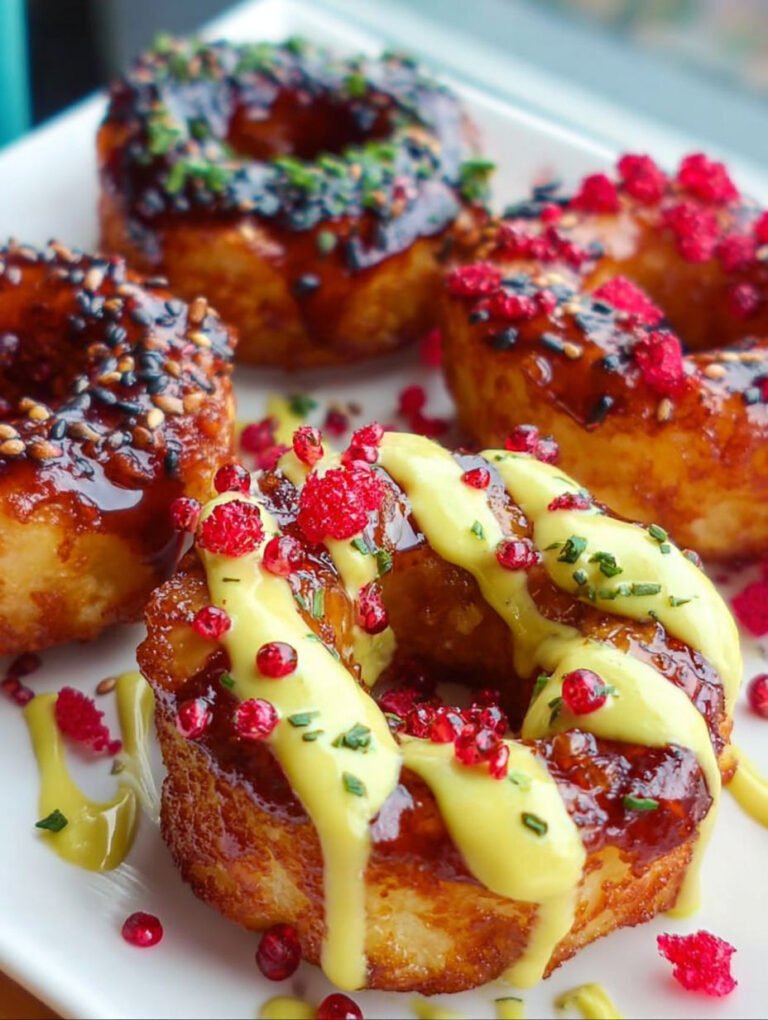 - Serviere die Donuts mit frischen Beeren oder einem Klecks griechischem Joghurt für eine gesunde und köstliche Note.