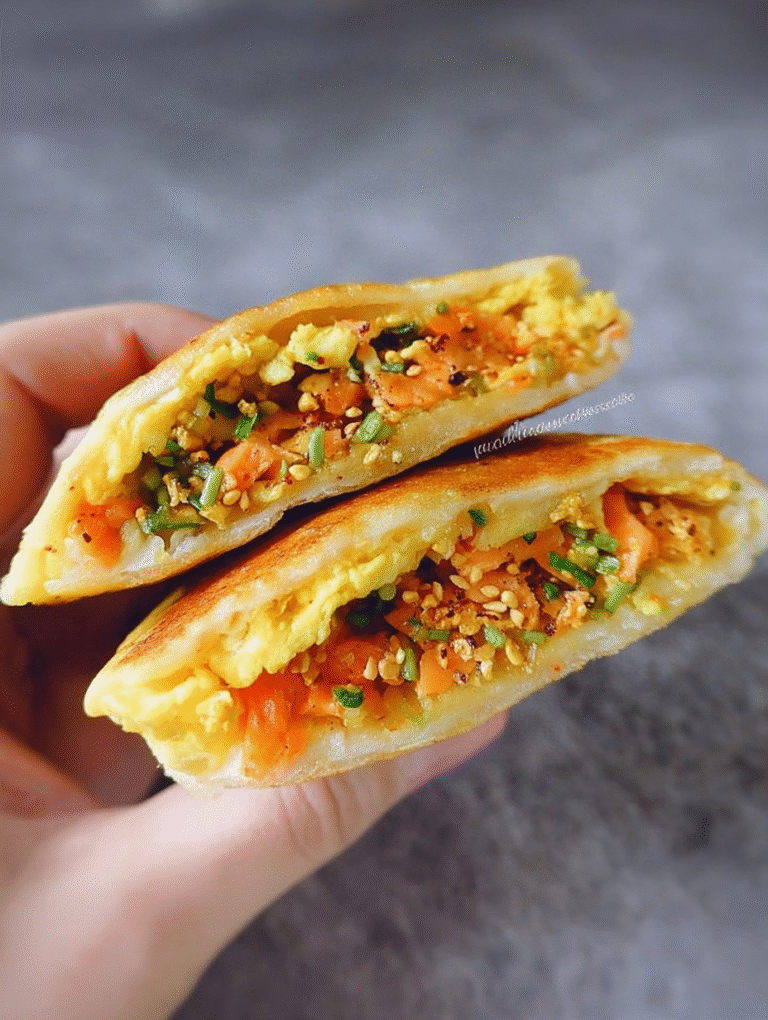 Diese herzhaften gefüllten Frühstückspfannkuchen nach chinesischer Art sind der Beweis, dass man morgens nicht auf Geschmack und Kreativität verzichten muss. Sie sind herzhaft, sättigend und bringen eine willkommene Abwechslung auf den Tisch. Von der einfachen Teigbereitung bis zur würzigen Füllung ist jeder Schritt leicht zu meistern. Egal ob als Wochenend-Highlight oder als vorbereitetes Mittagessen – diese chinesischen Crêpes sind ein echter Gewinner.