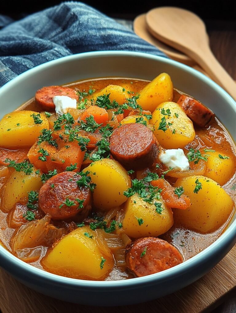 Wenn der Duft von geröstetem Paprika und frisch gekochten Erdäpfeln durch die Küche zieht, wissen Sie: Es ist Zeit für ein klassischesKartoffelgulasch mit Würstchen. Dieses einfache Gericht erinnert an Omas Küche und rettet garantiert jeden regnerischen Dienstagabend vor kulinarischer Langeweile.