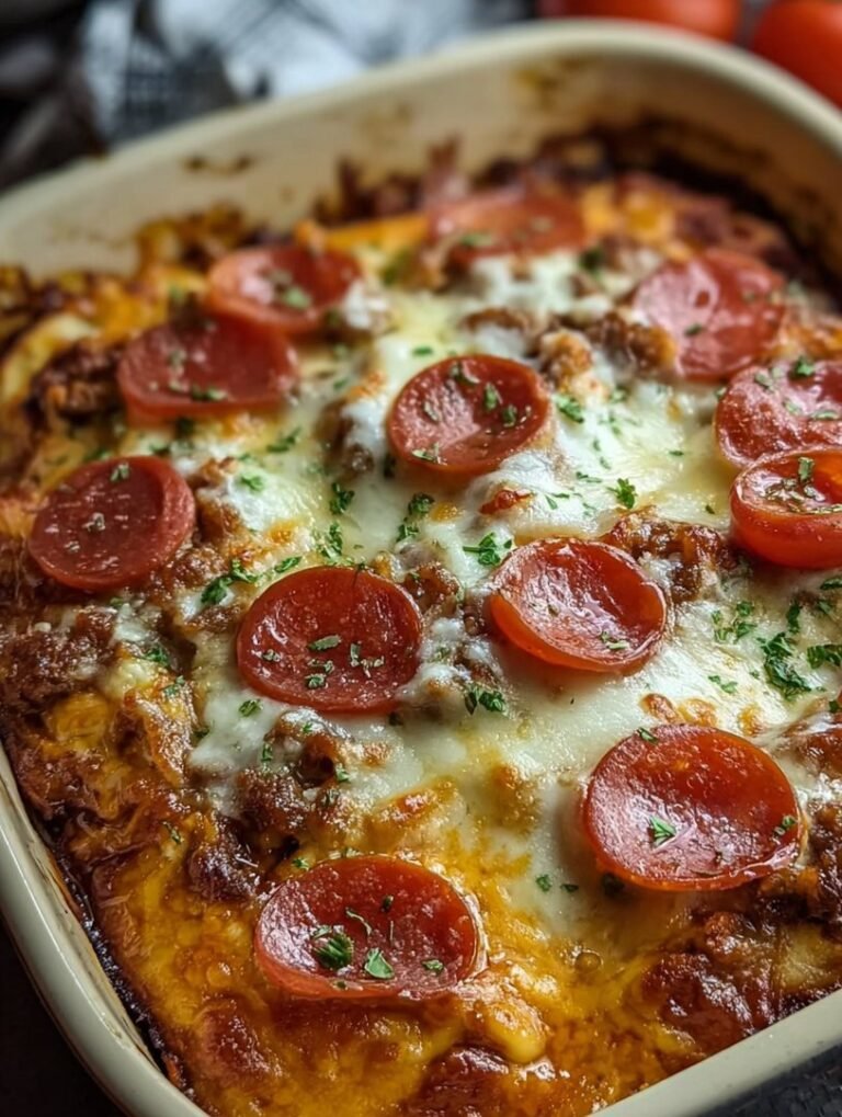 Wenn der Duft von geschmolzenem Käse und scharfer Peperoni aus dem Ofen strömt, weißt du: der Käse-Hüttenkäse-Rindfleisch-Peperoni-Auflauf ist fertig und bereit, deinen Feierabend zu retten.