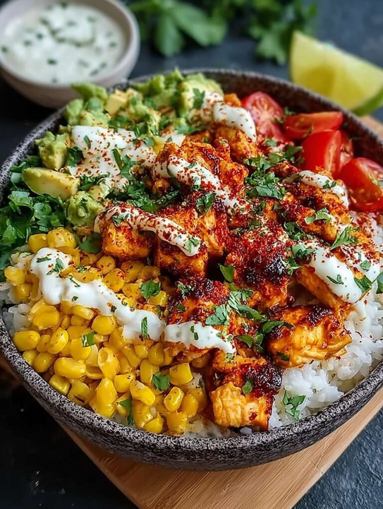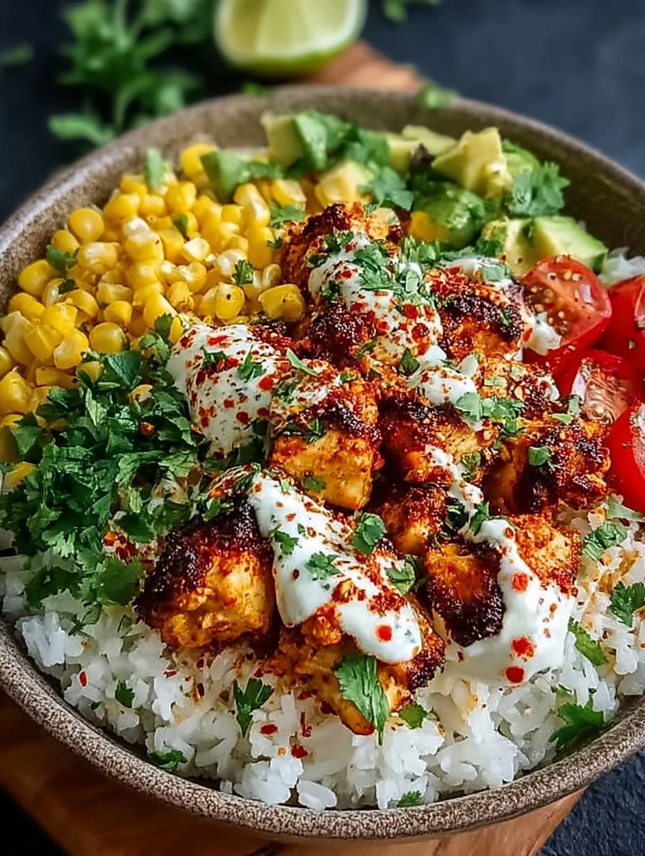 Diese Bowl vereint die Aromen des Hähnchens mit einer Vielzahl von knackigem Gemüse, sodass jede Gabel ein Geschmackserlebnis bietet. Die Kombination aus verschiedenen Texturen macht jede Mahlzeit spannend und sättigend.