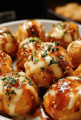 - Die goldbraunen, außen knusprigen Röschen, umhüllt von leuchtend roter Soße, sind ein echter Hingucker auf jeder Party.