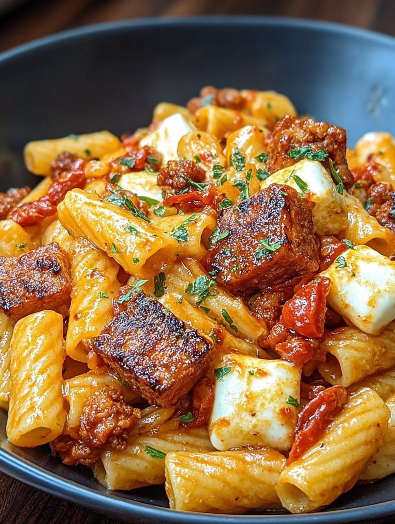 Viele scheuen sich davor, Käse und Chorizo in einem Pastagericht zu kombinieren, aber hier überwinden wir alle Konventionen. Wir verzichten bewusst auf eine dicke, cremige Sahnesoße. Stattdessen nutzen wir die einfache Süße von Dosentomaten und die herzhaften Aromen, die sich beim Braten der Hauptzutaten entwickeln. Das Ergebnis ist ein lebendiges, farbenfrohes Essen, das selbst den trübsten Tag aufhellt.