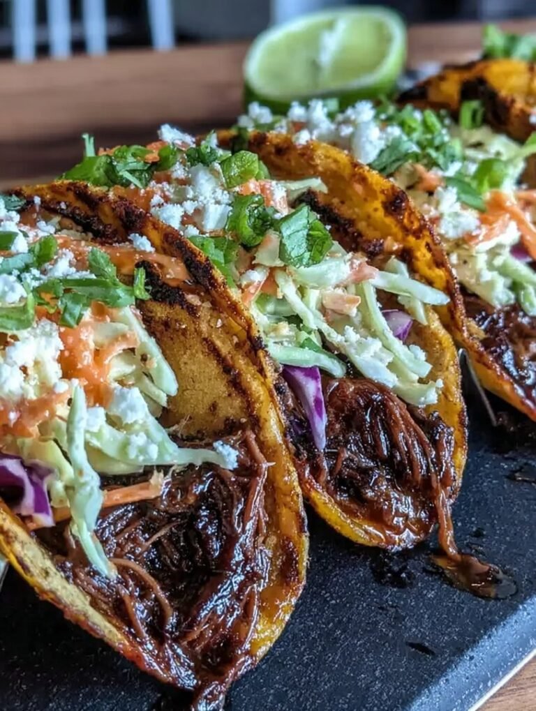Wenn das Aroma des geschmorten Rindfleisches durch das Haus zieht, wissen Sie, dass Sie bald die unglaublich leckerenSchmackhafte koreanische Rindfleisch-Tacos aus dem Schmortopf mit würzigem Gochujang-Krautsalatgenießen werden.