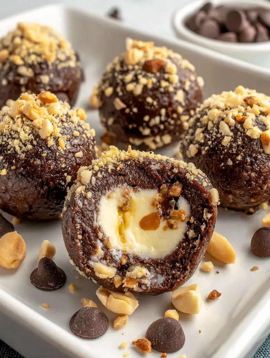 Die Kombination aus knackigen Nüssen und schokoladiger Süße macht diese Energy Balls zu einem echten Genuss. Und die cremige Füllung? Die ist das Geheimnis, das sie von anderen Snacks abhebt! Wenn du einmal reinbeißt, wirst du das Gefühl haben, im Schokoladenhimmel zu sein.