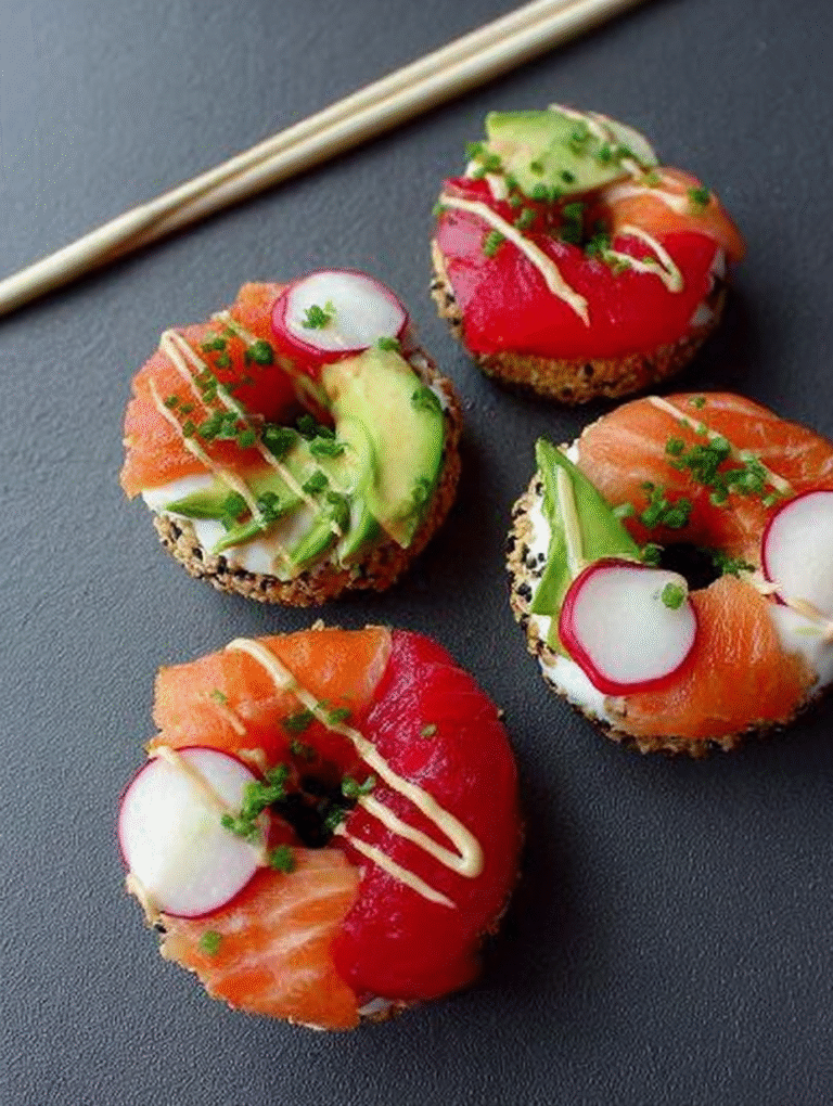 Erinnern Sie sich an den Moment, als Sie das erste Mal von frittiertem Eis hörten? Ein kulinarischer Schock! Ähnlich erging es mir, als ich zum ersten Mal die Idee der Sushi-Donuts sah. Wer braucht schon traditionelle Maki-Rollen, wenn man Reiskringel haben kann, die aussehen, als wären sie frisch aus dem Teigfrittierer, aber stattdessen voller Lachs und Avocado stecken? Diese kleinen Kunstwerke sind die heimlichen Superstars jeder Party und bringen das sonst so ernste Sushi-Handwerk auf ein lustiges, leicht zugängliches Niveau.