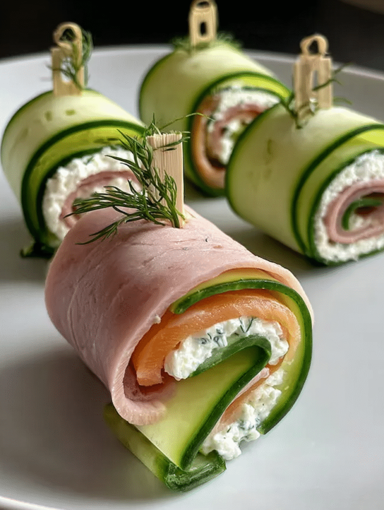 Als ich diese Röllchen das erste Mal zubereitete, war ich überrascht, wie schnell die Gäste sie verschlangen. Mein Nachbar fragte mich, ob ich die Gurken zuvor blanchiert hätte, um sie so geschmeidig zu machen. Ich musste lachen – der Trick ist nur ein guter Schäler und die absolute Trockenheit der Gurkenscheiben!