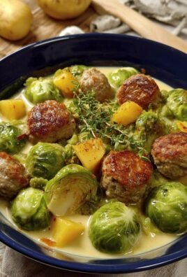 Herzhafter Rosenkohleintopf mit Hackbällchen